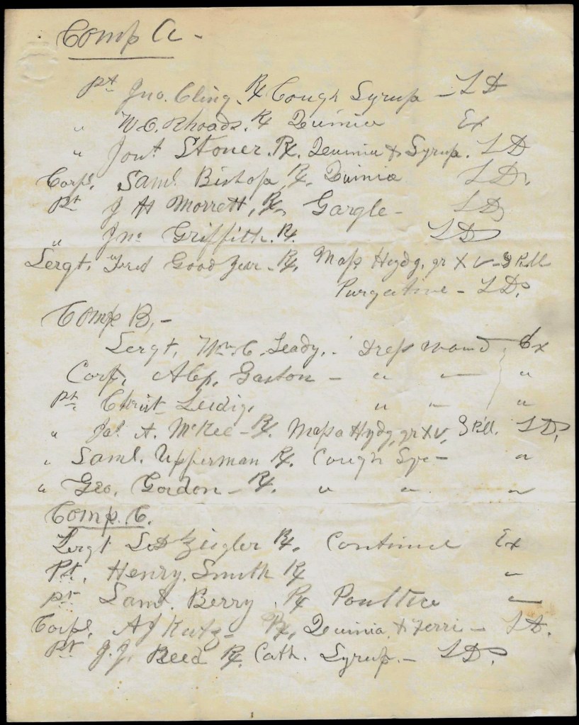Pvt. Jno. Cling, Rx, Cough syrup, LD.